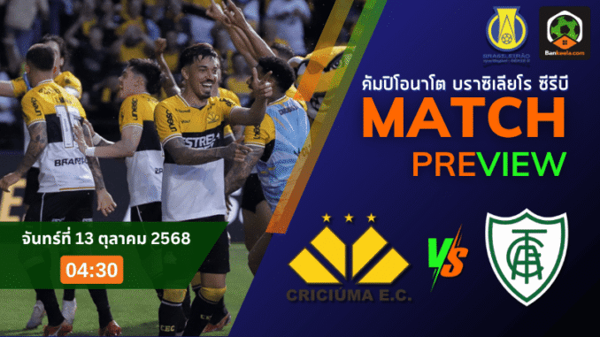 ศึกลูกหนัง บราซิล ซีรี่ บี คืนวันจันทร์ที่ 13 ตุลาคม 2568 เวลา 04:30 น. สนามเอสตาดิโอ เฮริแบร์โต้ ฮุลเซ่ จะลุกเป็นไฟเมื่อเจ้าถิ่น คริคูม่า อันดับ 4 เปิดบ้านรับมือผู้มาเยือนที่กำลังคึกอย่าง อเมริกา มิไนโร่ อันดับ 14 เกมนี้ไม่ใช่แค่สามแต้มธรรมดา แต่หมายถึงทิศทางฤดูกาลที่เหลือของทั้งสองฝั่งด้วย เรตเปิดหน้าบ้านให้เจ้าถิ่นต่อครึ่งลูก ราคาดูยั่วใจเพราะชื่อชั้นและแรงเชียร์ในรังโหดพอตัว ใครไล่เช็ก ตารางบอลวันนี้ คู่นี้คือหนึ่งในแมตช์ที่ควรล็อกหน้าจอรอชม
