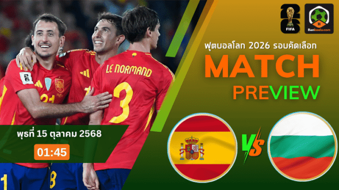 ศึก ฟุตบอลโลก 2026 รอบคัดเลือก โซนยุโรป กลุ่ม E คืนวันพุธที่ 15 ตุลาคม 2568 เวลา 01.45 น. ที่ เอสตาดิโอ โฆเซ่ ซอร์ริย่า แฟนบอลเตรียมระเบิดเสียงเชียร์เมื่อ สเปน ทีมจ่าฝูงที่กำลังร้อนแรง เปิดบ้านรับมือ บัลแกเรีย ทีมอันดับ 4 เกมนี้อัตราต่อรองยกให้กระทิงดุเป็นต่อขนาดใหญ่ที่ สเปน ต่อ 4-10 ตามศักยภาพและฟอร์มโดยรวมที่เหนือกว่าแบบคนละชั้น ใครกำลังรออัปเดตก่อนแทงอย่าลืมเปิด ตารางบอลวันนี้ เช็กเวลาและราคาล่าสุดให้พร้อม เพราะโอกาสเห็นประตูไหลมามีสูงมาก