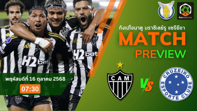 ศึก กังเปโอนาตู บราซีเลย์รู แซรียีอา ค่ำคืนวันพฤหัสบดีที่ 16 ตุลาคม 2568 เวลา 07:30 น. สนามอารีน่า เอ็มอาร์วี เตรียมสั่นสะเทือนเมื่อ แอตเลติโก มิไนโร่ ทีมอันดับ 16 เปิดบ้านรับมือคู่ปรับร่วมรัฐอย่าง ครูไซโร่ อันดับ 3 เกมที่มากกว่าคะแนนคือศักดิ์ศรีของเมืองเบโลโอรีซอนตี ใครล้มก่อนอาจกระทบโมเมนตัมยาว ๆ ในโค้งสุดท้ายของฤดูกาล เรตราคาในกระดานวันนี้ยกให้ “เสมอ” เปิดหน้าแลกกันตรง ๆ ตามสไตล์ดาร์บี้ร้อนแรง คู่นี้ติดโผแมตช์น่าดูใน ตารางบอลวันนี้ แบบไม่มีข้อกังขา