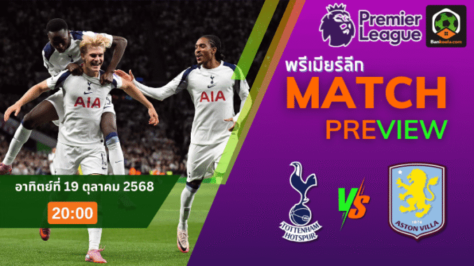 ศึกใหญ่พรีเมียร์ลีกกลับมาระอุอีกครั้ง เมื่อ ท็อตแน่ม ฮ็อทสเปอร์ เตรียมเปิดรังรับมือ แอสตัน วิลล่า ในค่ำคืนสุดมัน วันอาทิตย์ที่ 19 ตุลาคม 2568 เวลา 20:00 น. ที่สนาม ท็อตแน่ม ฮ็อตสเปอร์ สเตเดี้ยม เกมนี้ถูกจับตามองอย่างหนักจากแฟนบอลทั่วโลก ไม่เพียงเพราะศักดิ์ศรีของทั้งสองสโมสรเท่านั้น แต่ยังมีความหมายต่อพื้นที่ลุ้นตั๋วยุโรปโดยตรง แถมราคาต่อรองยังขยับเบาๆ เพียง 0.25 ทำให้บรรยากาศยิ่งเร่าร้อนเข้าไปอีก การเจอกันครั้งนี้อาจเป็นแมตช์พลิกล็อกของสัปดาห์เลยก็ว่าได้ ใครกำลังเช็ก ตารางบอลวันนี้ บอกเลยว่าคู่นี้ห้ามกะพริบตา