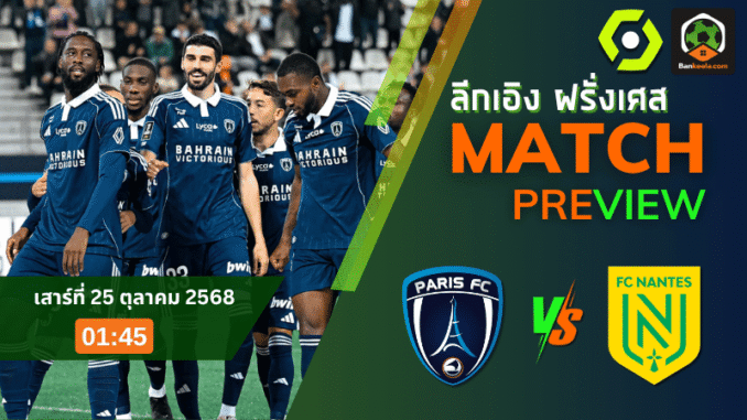 ค่ำคืนนี้แฟนบอลลีกเอิงมีนัดใหญ่ เมื่อ ปารีส เอฟซี เปิดรัง Stade Jean-Bouin รับการมาเยือนของ น็องต์ ในศึกสุดสำคัญของทีมโซนท้ายตาราง แม้ชื่อชั้นของทั้งสองทีมจะไม่ได้อยู่หัวตาราง แต่ความดุเดือดและความหมายของสามแต้มในเกมนี้ “สูงไม่แพ้เกมบิ๊กแมตช์” คิกออฟ 24 ตุลาคม 2568 เวลา 02.00 น. ใครที่กำลังไล่เช็ก ตารางบอลวันนี้ อย่าพลาดแมตช์นี้เด็ดขาด เพราะทั้งสองฝั่งต่างต้องการชัยชนะเพื่อหนีโซนอันตรายให้ได้