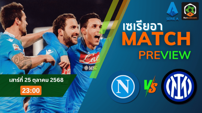ค่ำคืนเสาร์ที่ 25 ตุลาคม 2568 เวลา 23:00 น. อุณหภูมิที่ “สตาดิโอ ดิเอโก้ อาร์มันโด มาราโดน่า” พร้อมระเบิดเมื่อ นาโปลี ของอันโตนิโอ คอนเต้ เปิดบ้านต้อนรับ อินเตอร์ มิลาน ทีมแกร่งจากมิลานในบิ๊กแมตช์ เซเรียอา ที่ทั้งสองฝั่งไม่มีคำว่าถอย ความมันส์ยกกำลังสองเพราะนอกจากศักดิ์ศรีแล้ว แต้มนี้ยังมีผลโดยตรงกับพื้นที่หัวตาราง เจ้าบ้านต้องการสามคะแนนเพื่อเรียกความมั่นใจกลับมา ขณะที่ผู้มาเยือนตั้งเป้าตอกย้ำความร้อนแรงต่อเนื่อง ราคาหน้าเสื่อขยับให้ทีมเยือนบุกต่อ ปป เล็งแล้วชัดว่าเจ้าถิ่นไม่ง่าย แต่ก็ไม่ได้เป็นรองแบบหมดรูป แฟนบอลเช็ก ตารางบอลวันนี้ กันให้พร้อม เกมนี้ชนกันไฟแลบตั้งแต่นาทีแรกแน่นอน