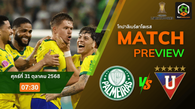 คืนวันศุกร์ที่ 31 ตุลาคม 2568 เวลา 07:30 น. สนามอัลลิอันซ์ ปาร์คของ พัลไมรัส เตรียมระเบิดความมันส์ โกปาลิเบร์ตาโดเรส เมื่อต้องเปิดบ้านไล่ล่าปาฏิหาริย์ใส่ แอลดียู กีโต้ หลังนัดแรกในเอกวาดอร์พ่าย 0-3 เกมนี้เจ้าถิ่นไม่มีทางเลือกนอกจากต้องเดินเครื่องรุกตั้งแต่นาทีแรกเพื่อทวงประตูคืนให้ได้เร็วที่สุด สายเช็ก ตารางบอลวันนี้ จดเวลาไว้ให้ดี เพราะนี่คือแมตช์ที่เดิมพันด้วยศักดิ์ศรีและตั๋วนัดชิงของฟุตบอลสโมสรอเมริกาใต้ ขณะที่กระแส ราคาบอล เปิดให้พัลไมรัสเป็นต่อพอสมควรตามสภาพแวดล้อมและคุณภาพผู้เล่น แต่ต้องยิงให้ขาดถึงจะพาเรื่องกลับมา
