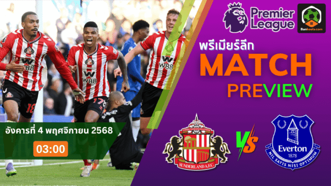 ศึกพรีเมียร์ลีก อังกฤษ คืนวันอังคารที่ 4 พฤศจิกายน 2568 เวลา 03.00 น. ที่สนาม สเตเดี้ยม ออฟ ไลท์ แฟนบอลต้องไม่พลาดเกมเดือดระหว่าง ซันเดอร์แลนด์ ทีมอันดับ 6 เปิดบ้านรับมือ เอฟเวอร์ตัน ทีมอันดับ 15 ในแมตช์ที่ต่างฝ่ายต่างต้องการสามแต้มเพื่อเป้าหมายของตัวเอง เกมนี้ ราคาบอลวันนี้ เปิดมาอยู่ที่ “เอฟเวอร์ตัน ต่อเสมอ (-10)” ถือว่าสูสีสุดๆ แต่เมื่อมองจาก ตารางบอลวันนี้ แล้ว เกมนี้มีทุกอย่างให้ลุ้น ทั้งความแข็งแกร่งในบ้านของ “แมวดำ” และการลุ้นคืนฟอร์มของ “ทอฟฟี่สีน้ำเงิน” ที่ยังไม่คงเส้นคงวา