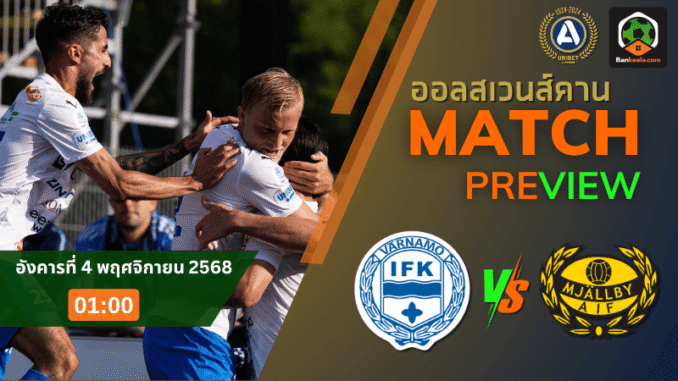 ศึกออลสเวนส์คานคืนวันอังคารที่ 4 พฤศจิกายน 2568 เวลา 01:00 น. สนามฟินน์เวดสวัลเล่นพร้อมสั่นสะเทือน เมื่อไอเอฟเค วาร์นาโม่ ทีมบ๊วยที่การันตีชะตาไปแล้ว เปิดบ้านรับมือจ่าฝูงฟอร์มดุอย่างมัลล์บี้ เอไอเอฟ เกมนี้แรงกระเพื่อมยังมีครบ ทั้งศักดิ์ศรีในรังและเป้าหมายปิดฤดูกาลสวยๆ ของทีมเยือน เรตเปิดมาเน้นให้เห็นความต่างของคุณภาพ “มัลล์บี้ ต่อ 1.0” แต่บนหน้ากระดาน ตารางบอลวันนี้ นัดนี้ยังมีของให้ลุ้นอีกเยอะ เพราะบอลสวีเดนมักพลิกได้เสมอ โดยเฉพาะเมื่อเจ้าถิ่นพร้อมเปิดแลกเพื่อเอาใจแฟนตัวเอง