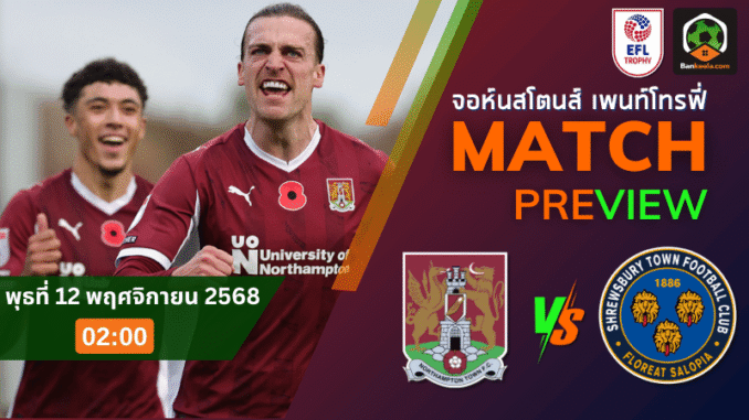 ศึก จอห์นสโตนส์ เพนท์โทรฟี่ กลุ่ม 11 คืนวันพุธที่ 12 พฤศจิกายน 2568 เวลา 02:00 น. ที่สนามซิกซ์ฟิลด์ส สเตเดี้ยม บ้านของ นอร์ทแธมป์ตัน ทาวน์ จะลุกเป็นไฟเมื่อเจ้าถิ่นจากลีกวันอันดับ 13 เปิดบ้านรับการมาเยือนของ ชรูว์สบิวรี่ ทาวน์ ทีมจากลีกทูอันดับ 23 เกมนี้ไม่ใช่แค่บอลถ้วยธรรมดา แต่คือเวทีพิสูจน์ตัวเองของทั้งสองสโมสร โดยเฉพาะเจ้าบ้านที่หวังใช้ถ้วยนี้เรียกความมั่นใจกลับมา ขณะที่ทีมเยือนต้องการล้มทีมจากดิวิชั่นสูงกว่าให้ได้ ราคาหน้าตลาดเปิดมาที่ นอร์ทแธมป์ตัน ต่อครึ่งลูก ถือว่ามีแรงหนุนจากการเล่นในถิ่นและชื่อชั้นที่เหนือกว่าเล็กน้อย แฟนบอลที่เปิดดู ตารางบอลวันนี้ ต้องวงกลมคู่นี้เอาไว้ เพราะรูปเกมมีโอกาสพลิกไปมาได้ทุกจังหวะ