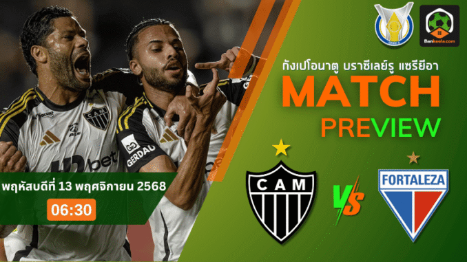 ศึก กังเปโอนาโต บราซิเลย์รู แซรียีอา คืนวันพฤหัสบดีที่ 13 พฤศจิกายน 2568 เวลา 06.30 น. ที่สนาม เอ็มอาร์วี อารีน่า เจ้าบ้าน อัตเลติโก มิไนโร่ เตรียมเปิดฉากดวลกับ ฟอร์ตาเลซ่า ในเกมที่ทั้งสองทีมต่างต้องการแต้มอย่างหนัก เพื่อไต่ลำดับบนตารางคะแนน โดยราคาบอลเปิดมาที่ อัตเลติโก มิไนโร่ ต่อ 0.75 (-10) ซึ่งถือว่ามีลุ้นสูงสำหรับแฟนเจ้าถิ่นที่กำลังมั่นใจสุดขีด หลังโชว์ฟอร์มเด็ดชนะมา 4 จาก 5 นัดหลังสุด และด้วยฟอร์มอันร้อนแรงของแนวรุกอย่าง ฮัลค์ ที่ยังคงเป็นหัวใจหลักของทีม เกมนี้จึงถูกจับตามองใน ตารางบอลวันนี้ อย่างมาก