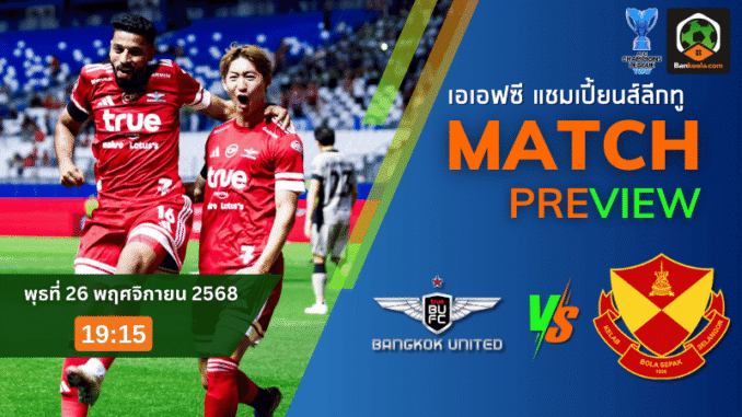 ศึก เอเอฟซี แชมเปี้ยนส์ลีก อีลิท ทู วันพุธที่ 26 พฤศจิกายน 2568 เวลา 19.15 น. ที่ลีโอ สเตเดียม แฟนบอลไทยเตรียมระเบิดเสียงเชียร์กันให้สุดคอ เมื่อ “แข้งเทพ” ทรู แบงค็อก ยูไนเต็ด ตัวแทนไทยลีก เปิดบ้านรับมือ เซลังกอร์ พีบี สโมสรแกร่งจากมาเลเซีย เกมนี้เป็นแมตช์สำคัญของรอบแบ่งกลุ่ม เพราะแต้มเดียวอาจไม่พอสำหรับเส้นทางเข้ารอบ ทุกอย่างต้องเล่นแบบเดินหน้าใส่เต็มข้อเท่านั้น