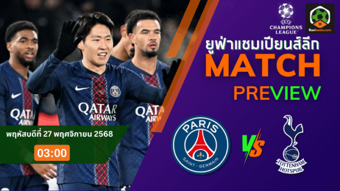 คืนวันพฤหัสบดีที่ 27 พฤศจิกายน 2568 เวลา 03.00 น. ตามเวลาไทย แฟนบอลต้องตั้งปลุกรอกันยาวๆ เมื่อยอดทีมเมืองน้ำหอม เปแอสเช เปิดสังเวียนปาร์ก เดอส์ แปรงส์ รับการมาเยือนของ “ไก่เดือยทอง” ท็อตแน่ม ฮ็อทสเปอร์ ในศึก ยูฟ่า แชมเปี้ยนส์ลีก รอบน็อกเอาต์ที่ไม่มีพื้นที่ให้พลาดแม้แต่นิดเดียว บนหน้า ตารางบอลวันนี้ คู่นี้ถูกวงแดงเอาไว้แบบชัดๆ เพราะทั้งสองทีมต่างมีอาวุธหนักเต็มแผง โดยเฉพาะแนวรุกที่ชื่อชั้นระดับพระกาฬแทบทุกตำแหน่ง