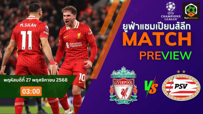 เกมนี้น่าจะเป็นบอลเปิดหน้าแลกตั้งแต่นกหวีดแรก ลิเวอร์พูลคงพยายามบดบี้ด้วยการเพรสสูง บุกใส่ใช้ความเฉียบคมของซาลาห์เป็นอาวุธหลัก ส่วนพีเอสวีจะรอจังหวะโต้กลับตามถนัดด้วยบอลยาวทะลุช่องไปหาทิลหรือปีกสองฝั่ง ด้วยรูปการณ์นี้มีโอกาสสูงที่แฟนบอลจะได้เห็นสกอร์ขยับตลอดทั้งเกม และคนที่เล่นสายโอเวอร์คงนั่งลุ้นกันยาวๆ