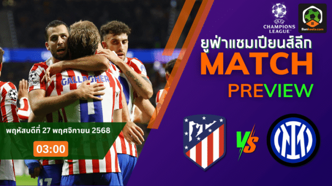 ค่ำคืนวันพฤหัสบดีที่ 27 พฤศจิกายน 2568 เวลา 03.00 น. สนามเอสตาดิโอ ริยาดห์ แอร์ เมโทรโปลิตาโน่ เตรียมลุกเป็นไฟ เมื่อ แอตเลติโก้ มาดริด เปิดบ้านรับการมาเยือนของยักษ์ใหญ่อิตาลีอย่าง อินเตอร์ มิลาน ในศึก ยูฟ่า แชมเปี้ยนส์ลีก รอบลีกสเตจ เกมนี้ถูกขีดเส้นแดงบนหน้า ตารางบอลวันนี้ แบบชัดเจนว่า “ห้ามพลาด” เพราะทั้งสองทีมต่างมีสไตล์บู๊ดุดัน ใส่กันไม่มียั้งอยู่แล้ว
