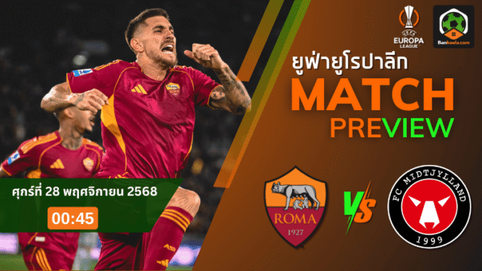 คืนวันศุกร์ที่ 28 พฤศจิกายน 2568 เวลา 00.45 น. ตามเวลาไทย สนามสตาดิโอ โอลิมปิโก้จะลุกเป็นไฟ เมื่อเจ้าถิ่น เอเอส โรม่า เปิดบ้านรับการมาเยือนของ มิดทิลแลนด์ ทีมฟอร์มแรงจากเดนมาร์กในศึกยูฟ่า ยูโรปาลีก รอบแบ่งกลุ่ม เกมนี้ราคาเปิดมาให้หมาป่ากรุงโรมเป็นต่อที่หนึ่งลูกควบครึ่ง ถือว่าแรงสมชื่อทีมใหญ่จากกัลโช่ แต่ฝั่งทีมเยือนกำลังมั่นใจสุดขีดจากการชนะในเวทียุโรปต่อเนื่องหลายเกม ทำให้แมตช์นี้กลายเป็นคู่ที่สายเชียร์ต้องขีดเส้นสีแดงไว้ในหน้าเว็บ ตารางบอลวันนี้ แบบห้ามพลาด