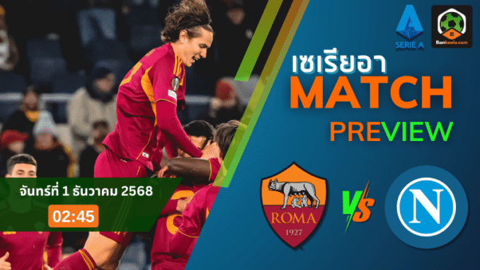 ค่ำคืนวันจันทร์ที่สตาดิโอ โอลิมปิโกจะลุกเป็นไฟ เมื่อ เอเอส โรม่า เปิดบ้านรับมือคู่แค้นร่วมลีกอย่าง นาโปลี ในศึกกัลโช่ เซเรียอา เวลา 02.45 น. ตามเวลาไทย เกมนี้บอกได้คำเดียวว่าห้ามหลับก่อน เพราะสถานการณ์บนตารางคะแนนกำลังตึงสุดขีด หมาป่าแห่งกรุงโรมกำลังเร่งทำแต้มไล่กลุ่มท็อปโฟร์ ส่วนอาคันตุกะจากเนเปิลส์ต้องการสามแต้มเพื่อยึดโควตายุโรปให้มั่น