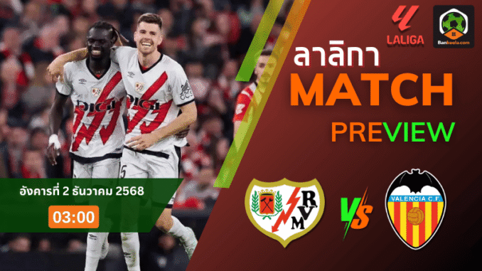 คืนวันอังคารที่ 2 ธันวาคม 2568 เวลา 03.00 น. แฟนบอลสเปนเตรียมเปิดจอรอได้เลย เมื่อเกมใหญ่โซนล่างของตาราง ลาลีกา ระเบิดขึ้นที่เอสตาดิโอ เด บาเยกัส เจ้าถิ่น ราโย่ บาเยกาโน่ เปิดรังรับการมาเยือนของคู่แค้นร่วมลีกอย่าง บาเลนเซีย สองทีมที่คะแนนเบียดกันชิดติดไหล่และกำลังหนีความกดดันจากโซนท้ายตารางแบบหายใจรดต้นคอ