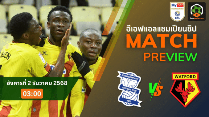 คืนวันอังคารที่ 2 ธันวาคม 2568 เวลา 03.00 น. สนามเซนต์ แอนดรูว์ส สเตเดี้ยมจะลุกเป็นไฟ เมื่อศึก แชมเปี้ยนชิพ อังกฤษคู่ดึกประจำคืนระเบิดขึ้น ระหว่างเจ้าถิ่น เบอร์มิงแฮม ซิตี้ ทีมอันดับ 11 เปิดบ้านรับมือ วัตฟอร์ด ทีมอันดับ 15 ที่กำลังดิ้นขยับหนีโซนล่างของตารางแบบหืดจับ เกมนี้ไม่ใช่แค่สามแต้มธรรมดา แต่คือศักดิ์ศรีของสองทีมใหญ่ที่เคยโลดแล่นบนเวทีพรีเมียร์ลีกมาแล้วทั้งคู่ ใครพลาดเท่ากับปล่อยคู่แข่งแซงหน้าไปต่อหน้าต่อตา