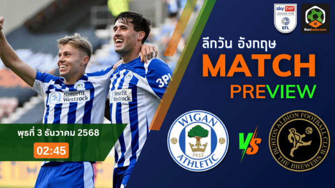 ศึกฟุตบอลลีกวัน อังกฤษ คืนวันพุธที่ 3 ธันวาคม 2568 เวลา 02.45 น. ตามเวลาไทย วีแกน แอธเลติก เตรียมเปิดบ้านรับมือ เบอร์ตัน อัลเบี้ยน เกมสำคัญของสองทีมที่แต้มเท่ากันเป๊ะบนตารางคะแนน แต่อยู่คนละอันดับเล็กน้อย เจ้าถิ่นรั้งที่ 17 ส่วนทีมเยือนอยู่ที่ 19 โดยทั้งคู่มีช่องห่างจากโซนตกชั้นอยู่ราว 6 แต้มเท่านั้น บรรยากาศเลยอึดอัดกดดันตั้งแต่นกหวีดแรกแน่นอน