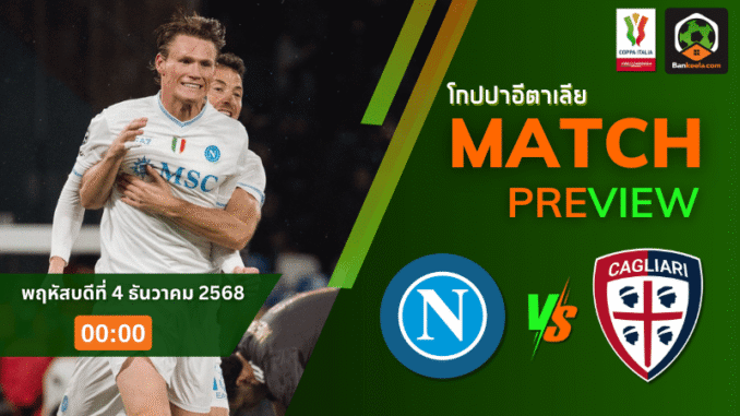 ค่ำคืนวันพฤหัสบดีที่ 4 ธันวาคม 2568 เวลา 00.00 น. แฟนบอลอิตาลีเตรียมเปิดจอดูเกมใหญ่ในรายการ โกปปา อิตาเลีย รอบ 16 ทีมสุดท้าย เมื่อยักษ์ใหญ่อ่าวเนเปิลส์อย่าง นาโปลี เปิดสตาดิโอ ดีเอโก้ มาราโดน่า ดวลเดือดกับ กาญารี่ ทีมดุจากเกาะซาร์เดญ่า เกมนี้บ่อนเปิด ราคาบอล ให้เจ้าถิ่นต่อหนัก 1.75 สะท้อนชัดว่าคุณภาพสภาพทีมเหนือกว่าแบบเห็นได้ชัด และเมื่อไล่ดูโปรแกรมในหน้า ตารางบอลวันนี้ นี่คือแมตช์ที่สายลงทุนและคอบอลสายเกมรุกต้องปักธงรอดู เพราะสไตล์ของทั้งสองทีมคือไม่ถอยง่าย ยิ่งถ้วยน็อกเอาต์ที่แพ้ตกรอบแบบนี้ มีโอกาสเปิดหน้าแลกกันตั้งแต่นาทีแรก