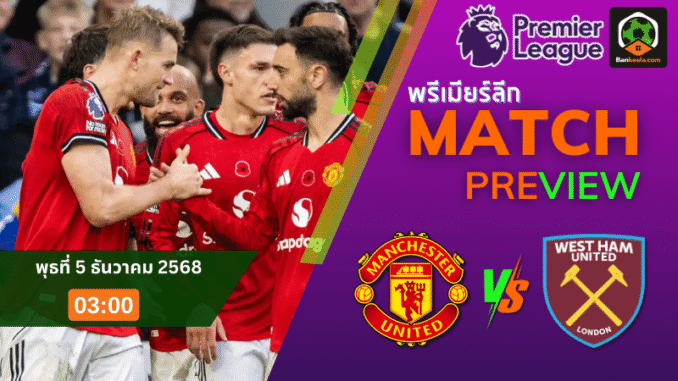 ค่ำคืนวันพฤหัสบดีที่ 4 ธันวาคม 2568 เวลา 03.00 น. แฟนบอลทั่วโลกเตรียมตาสว่างกันอีกครั้ง เมื่อศึก พรีเมียร์ลีก คู่ดึกจัดให้แบบสุดมันที่โอลด์ แทร็ฟฟอร์ด ระหว่าง แมนเชสเตอร์ ยูไนเต็ด ทีมอันดับ 7 เปิดบ้านดวลเดือด เวสต์แฮม ทีมหนีตายอันดับ 17 เกมนี้มีความหมายทั้งต่อพื้นที่ยุโรปของเจ้าถิ่นและหนีตกชั้นของทีมเยือนอย่างแท้จริง บนหน้า ตารางบอลวันนี้ ช่องถ่ายทอดสดของคู่นี้ถูกวงกลมหนาๆ ไว้เรียบร้อย เพราะทุกแต้มสำคัญกับสองสโมสรยักษ์ใหญ่ต่างยุคต่างสไตล์ เจ้ามือเปิดหน้าเสื่อให้ปีศาจแดงเป็นต่อในถิ่นที่ราคา 1.25 ลูก บอกได้คำเดียวว่าใครใจไม่ถึงอย่าเพิ่งรีบกดฝั่งไหน ต้องชั่งน้ำหนักให้ดี