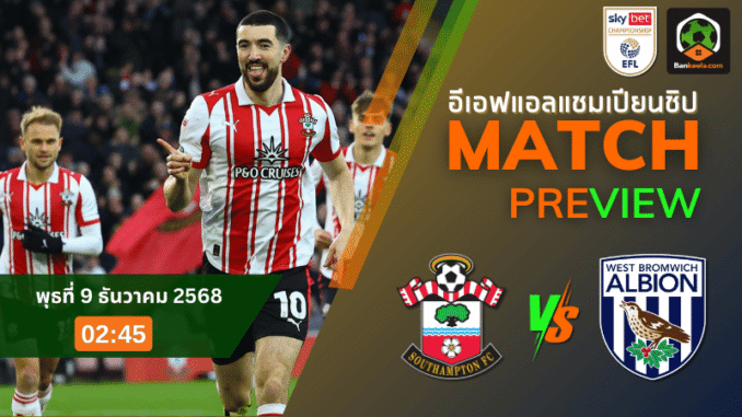 เกมมันส์ยามค่ำคืนในศึก แชมเปียนชิป อังกฤษ คู่ที่สายคอบอลจับตามองคือการดวลกันระหว่าง เซาแธมป์ตัน ทีมอันดับ 11 เปิดบ้านรับมือ เวสต์บรอมวิช อันดับ 16 ที่สนามเซนต์แมร์รี่ สเตเดี้ยม วันพุธที่ 10 ธันวาคม 2568 เวลา 02.45 น. ตามโปรแกรมที่ไล่ดูในหน้า ตารางบอลวันนี้ ต้องบอกเลยว่านี่คือหนึ่งในคู่ที่มีเรื่องราวให้ลุ้นครบ ทั้งการเบียดแย่งโซนเพลย์ออฟและศึกศักดิ์ศรีทีมใหญ่ลีกพระรอง