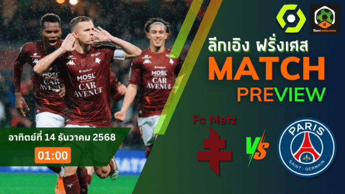 ศึกลีกเอิง ฝรั่งเศส คืนวันอาทิตย์ที่ 14 ธันวาคม 2568 เวลา 01:00 น. ที่สต๊าด แซงต์-ซิมโฟเรียง คือแมตช์ที่เหมือนยืนกันคนละฝั่งของภูเขา เม็ตซ์ เจ้าถิ่นที่กำลังดิ้นรนหนีโซนท้ายตาราง ต้องรับมือ ปารีส แซงต์ แชร์กแมง ทีมลุ้นแชมป์ที่ยังต้องเร่งเครื่องไล่จ่าฝูงแบบห้ามพลาดแม้แต่วินาทีเดียว เกมนี้จังหวะเข้าบอลจะหนักขึ้นตามแรงกดดันแน่นอน เพราะเม็ตซ์แพ้มาหลายเกมติดจนตกไปกองล่าง ส่วนเปแอสเชแม้ยังอยู่หัวแถว แต่แต้มก็ไม่ได้ทิ้งแบบสบายใจ จุดนี้ทำให้ “เกมเยือนธรรมดา” กลายเป็น “เกมบังคับชนะ” ทันที สำหรับเรื่องเรตต่อรองในบทความต้นฉบับไม่ได้ระบุตัวเลขชัดเจน แต่ภาพรวมคือฝั่งเปแอสเชถูกมองเหนือกว่าชัด และเป็นเกมที่สายต่อกำลังจับตา เพราะแนวโน้มสกอร์มีโอกาสไหลได้ถ้าเม็ตซ์ต้านไม่อยู่