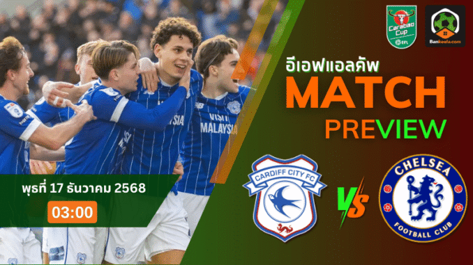 ค่ำคืนวันพุธที่ 17 ธันวาคม 2568 เวลา 03.00 น. ตามเวลาไทย แฟนบอลต้องเปิด ตารางบอลวันนี้ รอไว้ให้ดี เพราะที่คาร์ดิฟฟ์ ซิตี้ สเตเดี้ยม จะระอุไปด้วยเสียงเชียร์เมื่อ คาร์ดิฟฟ์ซิตี ทีมฟอร์มแรงอันดับ 1 จากลีก วัน เปิดบ้านรับการมาเยือนของ เชลซี ยักษ์ใหญ่จากพรีเมียร์ลีก ในรอบก่อนรองชนะเลิศ คาราบาวคัพ เกมเดียวรู้เรื่อง ใครพลาดคือหลุดจากเส้นทางลุ้นแชมป์ทันที