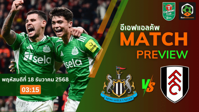 คืนวันพฤหัสบดีที่ 18 ธันวาคม 2568 เวลา 03.15 น. สนามเซนต์ เจมส์ พาร์ค เตรียมสั่นสะเทือนเมื่อเจ้าถิ่น นิวคาสเซิ่ล ยูไนเต็ด เปิดบ้านต้อนรับการมาเยือนของทีมจอมลุยจากลอนดอนอย่าง ฟูแล่ม ในศึก อีเอฟแอลคัพ รอบสำคัญของซีซั่นนี้ เกมนี้ไม่ใช่แค่การชิงตั๋วเข้ารอบ แต่คือการวัดดีกรีทีมพรีเมียร์ลีกว่าฝั่งไหนมีม้านั่งสำรองแน่นกว่ากันและใครจะกล้าเดินหน้าใส่ตั้งแต่นาทีแรก