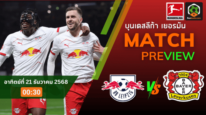 คืนวันอาทิตย์ที่ 21 ธันวาคม 2568 เวลา 00.30 น. แฟนบอล บุนเดสลีกา เยอรมันเตรียมระเบิดอารมณ์กันที่เร้ดบูลล์ อารีน่า เมื่อ แอร์เบ ไลป์ซิก ทีมรองจ่าฝูง เปิดบ้านดวลเดือด ไบเออร์ เลเวอร์คูเซิน อันดับ 4 ของตาราง เกมนี้ไม่ใช่แค่ศึกชิงสามแต้มธรรมดา แต่เป็นแมตช์ชี้ชะตาท็อปโฟร์โดยตรง เพราะแต้มของทั้งสองทีมไม่ห่างกันมาก ชนะทีเดียวอาจเปลี่ยนหน้าตาโซนหัวตารางใน ตารางบอลวันนี้ ได้ทันที