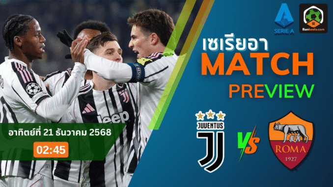 เซเรียอา คืนวันอาทิตย์ที่ 21 ธันวาคม 2568 เวลา 02.45 น. สนามอัลลิอันซ์ สเตเดี้ยม เมืองตูรินเตรียมลุกเป็นไฟ เมื่อ “ม้าลาย” ยูเวนตุส เปิดรังรับการมาเยือนของ “หมาป่ากรุงโรม” โรม่า เกมนี้เป็นการดวลกันของทีมอันดับ 5 กับอันดับ 4 บนตารางกัลโช่ เซเรียอา สามแต้มมีความหมายอย่างยิ่งต่อเส้นทางลุ้นโควตายูฟ่า แชมเปียนส์ลีก ทุกสายตาจึงจับจ้องไปที่คู่เดือดแห่งค่ำคืนนี้ซึ่งติดอยู่บนหน้า ตารางบอลวันนี้ แบบเด่นสะดุดตา