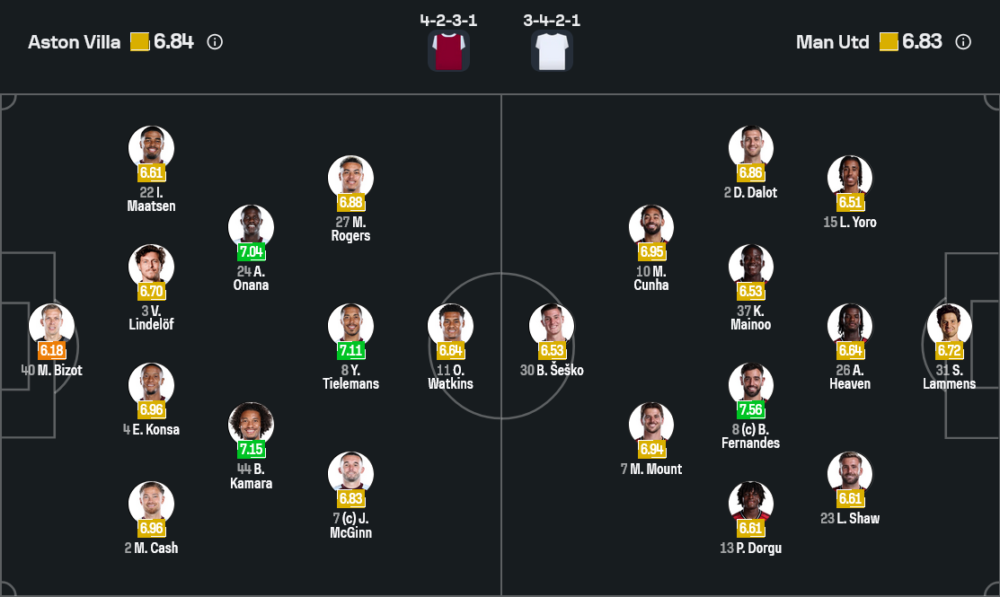 ฝั่งผีแดงยุค รูเบน อาโมริม ต้องแก้โจทย์หนักเรื่องสภาพทีม ตัวหลักหายไปหลายรายจากทั้งโทษแบนและอาการบาดเจ็บ คาเซมิโร่ ถูกพักแข้งจากการสะสมใบเหลืองครบโควต้า ขณะที่แนวรับขาด แฮร์รี่ แม็กไกวร์ และ มัตไธย์ส เดอ ลิกต์ ที่เจ็บต่อเนื่อง รวมถึง นูสแซร์ มาซราอุย, อาหมัด ดิยัลโล่ และ ไบรอัน เอ็มโบโม่ ที่ติดภารกิจทีมชาติ ทำให้โค้ชโปรตุกีสต้องวางหมากรัดกุมด้วยระบบ 3-4-2-1 ใช้ เซนเน่ ลัมเมนส์ ยืนด่านสุดท้าย สามปราการหลังเป็น เลนี่ โยโร่, ลิซานโดร มาร์ติเนซ และ ลุค ชอว์ วิงแบ็กขวาซ้ายเป็น ดิโอโก้ ดาโลต์ กับ พาทริค ดอร์กู กลางสนามมอบหมายให้ ค็อบบี้ ไมนู ยืนคุมจังหวะร่วมกับ บรูโน่ แฟร์นานเดส ที่รับบททั้งเชื่อมเกมและสอดขึ้นมายิงเอง ด้านหน้าส่ง เมสัน เม้าต์ กับ มาเธอุส คุนญ่า ยืนเป็นตัวรุกหลังศูนย์หน้า โดยมี เบนยามิน เซสโก้ เป็นหอกเป้าคอยปิดบัญชีในกรอบเขตโทษ