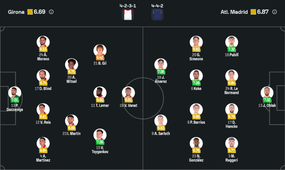 ผู้รักษาประตูจะเป็น ยาน โอบลัค ที่ยืนเฝ้าเสาอย่างมั่นใจ แนวรับสี่คนมี นาฮูเอล โมลิน่า ทางขวา คู่เซ็นเตอร์ใช้ ดาวิด ฮานซ์โก้ กับ มาร์ก ปูบิลล์ ส่วนฝั่งซ้ายเป็น มัตเตโอ รุจเจรี่ กลางสนามวาง โกเก้ เป็นหัวใจสำคัญคุมจังหวะร่วมกับ ปาโบล บาร์ริออส ขณะที่ริมเส้นสองฝั่งใช้ จูเลียโน่ ซิเมโอเน่ กับ นิโก้ กอนซาเลซ คอยกระชากบอลสวนกลับ
