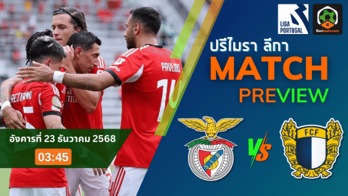 คืนวันอังคารที่ 23 ธันวาคม 2568 เวลา 03.45 น. แฟนบอลลูกหนังแดนฝอยทองต้องตั้งนาฬิกาปลุก เพราะยักษ์ใหญ่ประจำลีกอย่าง เบนฟิก้า เตรียมเปิดบ้านที่เอสตาดิโอ ดา ลุซ รับมือคู่แข่งจอมล้มยักษ์ ฟามาลิเคา ในศึก ปรีไมราลีกา ที่มีเดิมพันเป็นทั้งแต้มในตารางและศักดิ์ศรีของสองกุนซืออย่าง โชเซ่ มูรินโญ่ กับ อูโก้ โอลิเวียรา