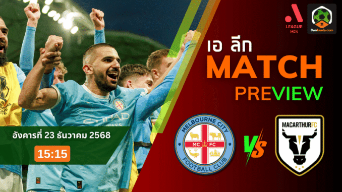 ⚽ ศึกเอ ลีกระอุ เมืองเมลเบิร์น ซิตี้ เปิดบ้านบู๊แม็คอาร์เธอร์ ลุ้นเดือดกลางแดดออสซี่