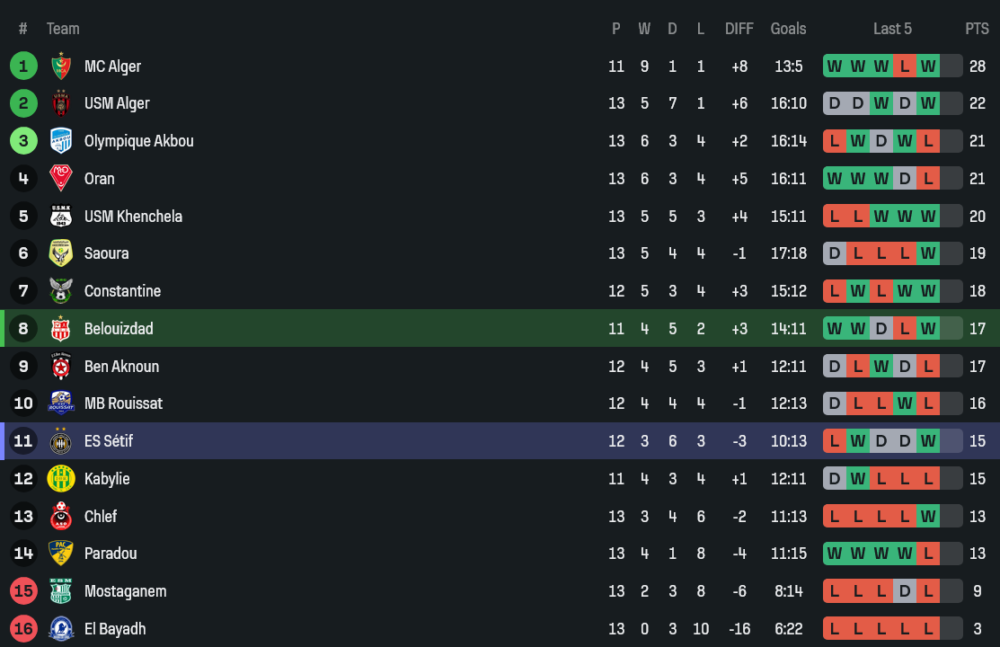 ด้านเซทิฟลงเล่นในลีกไปแล้ว 12 นัด ชนะ 3 เสมอ 6 แพ้ 3 ยิงได้ 10 เสีย 13 ตัวเลขบอกชัดว่าเป็นทีมที่เน้นความรัดกุม เกมรับเหนียวแน่นพอใช้ แต่จุดอ่อนคือยิงประตูไม่เยอะ ทำให้หลายนัดจบลงด้วยผลเสมอ แม้ไม่แพ้ แต่ก็เก็บแต้มได้น้อยกว่าที่ควรจะเป็น