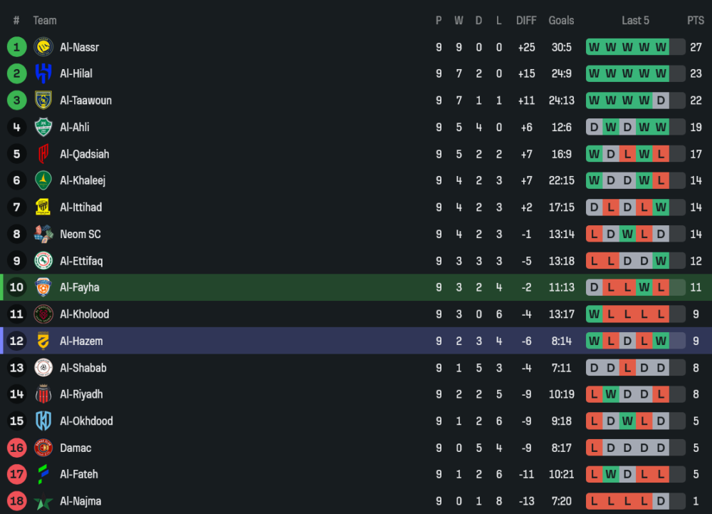 ปัญหาใหญ่ของ อัล ฮาเซม คือการจบสกอร์ ตลอดซีซัน 2025-26 พวกเขายิงประตูได้เพียง 8 ลูก น้อยติดกลุ่มล่างของลีก ทั้งที่ส่วนใหญ่เป็นฝ่ายออกนำก่อนในหลายเกม แต่กลับโดนตีเสมอหรือแซงได้ง่าย ทำให้หล่นไปอยู่เหนือโซนตกชั้นแค่สี่คะแนนเท่านั้น ด้านเกมเยือนถือว่าไม่เลว เพราะเก็บมาแล้ว 5 จาก 9 คะแนนที่มีอยู่ทั้งหมด ทว่าการบุกมาเยือนทีมที่เล่นในบ้านเหนียวแน่นอย่าง อัล-ไฟฮา ถือเป็นบททดสอบที่หนักหน่วงอีกครั้ง