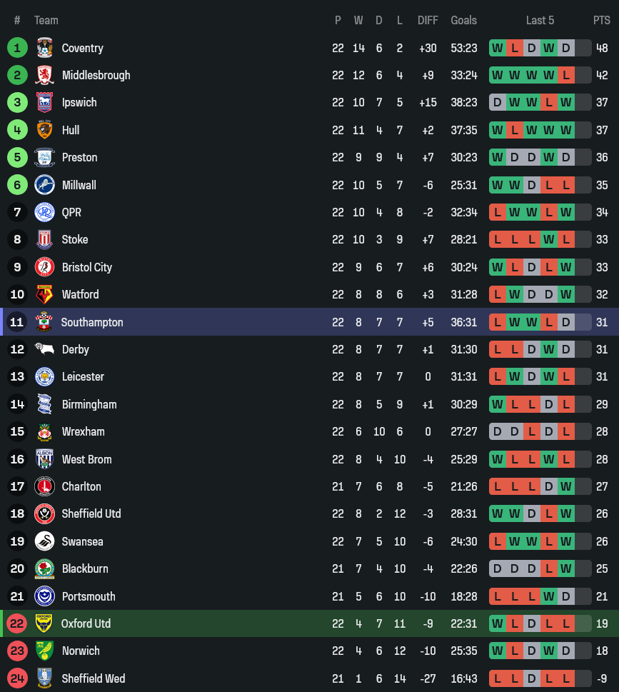 รูปแบบผลงานในลีกช่วงหลังของอ็อกซ์ฟอร์ดเรียกได้ว่ากระท่อนกระแท่นเต็มคำ ตารางฟอร์ม 6 นัดหลังคือ เสมอ ชนะ แพ้ เสมอ แพ้ แพ้ รวมเป็นแค่ 5 แต้มจาก 18 คะแนนเต็ม เกมล่าสุดบุกไปพ่ายชาร์ลตัน 0 1 ที่เดอะ วัลลีย์ แบบสู้ได้สูสีแต่จบสกอร์ไม่ได้ก่อนจะโดนลงโทษท้ายเกม ก่อนหน้านั้นก็แพรสตันแบบเฉือนๆ ทำให้แพ้ถึง 3 จาก 4 นัดหลังสุด และไม่สามารถยิงประตูได้ถึง 3 เกมในช่วงดังกล่าว