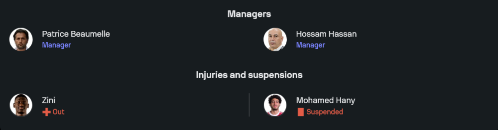 ฝั่งอียิปต์ของกุนซือ Hossam Hassan จะปรับมาเล่นในระบบ 5-3-2 เพื่อเน้นความรัดกุม ผู้รักษาประตูยังคงเป็น โมฮาเหม็ด เอลเชนาวี แนวรับสามเซ็นเตอร์แบ็กประกอบด้วย รามี่ ราเบีย, ฮัมดี้ ฟาธี และ ยัสเซอร์ อิบราฮิม ขนาบข้างด้วยวิงแบ็กสองฝั่งอย่าง มาห์มูด ฮัมดี้ ทางซ้าย และ เอ็มาม อชูร์ ทางขวา ที่พร้อมเติมเกมรุกตลอดทั้งเกม