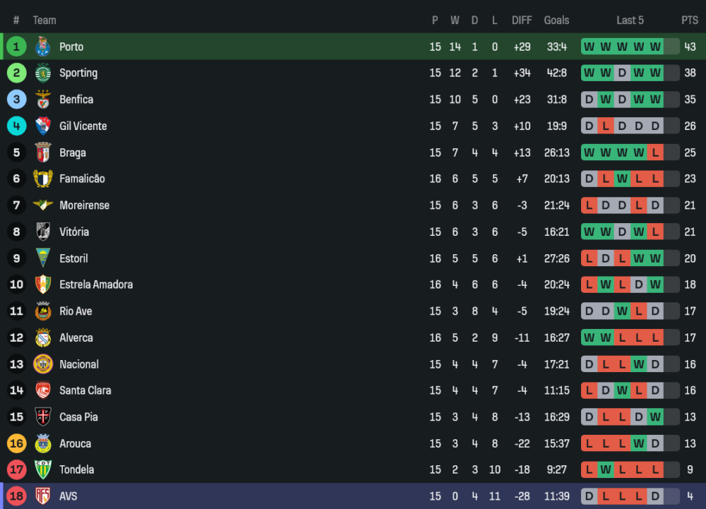ผลงาน 5 นัดหลังในลีกของปอร์โต้ถือว่ายังไม่นิ่งเท่าที่ควร เริ่มจากเกมแพ้ 1-2 ในบ้าน ต่อด้วยบุกพ่าย 1-4 แบบเละเทะ ก่อนจะตั้งหลักคืนฟอร์มด้วยการเปิดรังชนะ 3-1 จากนั้นออกไปเสมอ 2-2 ในเกมที่เล่นกันมันส์ทั้งสองฝ่าย และปิดท้ายด้วยการบุกชนะ 3-1 อีกครั้ง ทำให้สถิติรวมช่วงนี้คือ ชนะ 2 เสมอ 1 แพ้ 2 ยิงได้ 10 เสีย 10 แสดงให้เห็นว่าเกมรุกยังคม แต่เกมรับยังมีรั่วให้เห็นเป็นระยะ