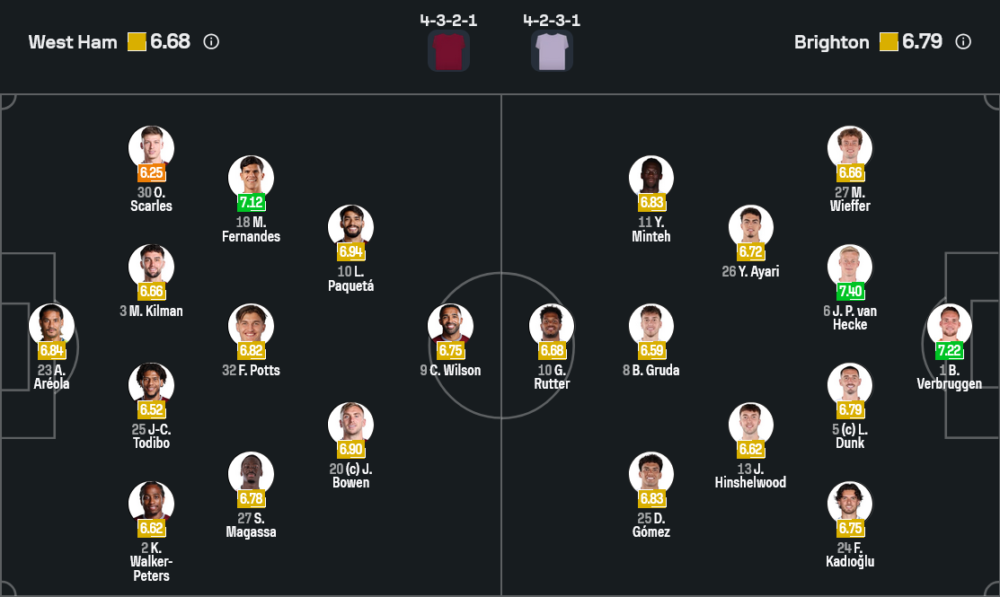 ถ้าวัดกันด้วยชื่อชั้นและรูปเกมในซีซันนี้ ไบรท์ตันดูมีระบบที่ชัดเจนกว่า การต่อบอลสั้น ลากดึงออกด้านข้าง แล้วแทงทะลุให้ เวลเบ็ค หรือแนวรุกริมเส้นหลุดเข้าเขตโทษ ทำให้คู่แข่งต้องวิ่งตามตลอด 90 นาที ยิ่งมี มินเตห์ ที่สปีดจัด และ อายารี ที่จ่ายบอลคม ทำให้แนวรับเวสต์แฮมต้องระวังพื้นที่ระหว่างเซ็นเตอร์กับฟูลแบ็กเป็นพิเศษ