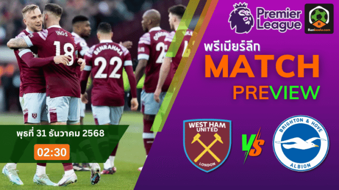 คืนวันพุธที่ 31 ธันวาคม 2568 เวลา 02:30 น. ตามเวลาไทย แฟนบอลเตรียมอดนอนกันได้เลย เมื่อเวสต์แฮม ยูไนเต็ด เปิดบ้านที่ลอนดอน สเตเดี้ยม รับการมาเยือนของไบรท์ตัน โฮฟ อัลเบี้ยน เกมส่งท้ายปีที่มีผลต่อพื้นที่กลางตารางและลุ้นโซนยุโรปโดยตรง ใครที่กำลังเปิดหน้าเว็บเช็ก ตารางบอลวันนี้ คู่นี้คือหนึ่งในไฮไลต์ที่ห้ามพลาด โดยเฉพาะสาย ดูบอลออนไลน์ และคอ ดูบอลสด ที่อยากตามเชียร์แบบสดทุกจังหวะชนเสาเข้ากรอบ