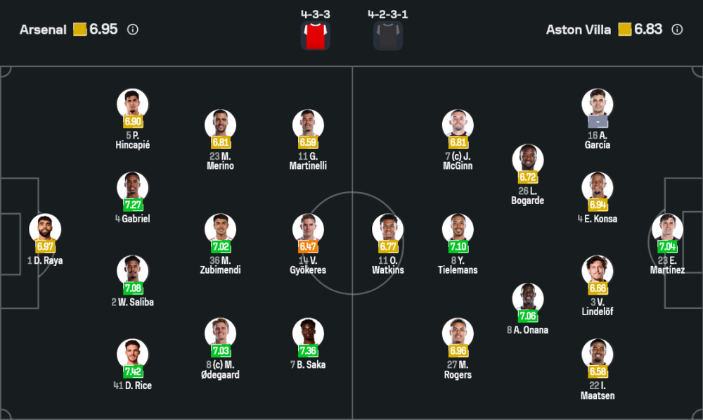 เกมรุกด้านหน้าในระบบ 4-3-3 ใช้ บูกาโย่ ซาก้า ทางขวา กาเบรียล มาร์ติเนลลี่ ทางซ้าย และ วิคตอร์ โยเคเรส ยืนหน้าเป้าล่าตาข่าย สามประสานนี้มีทั้งความเร็ว การเลี้ยงกินตัว และการจบสกอร์ครบเครื่อง พร้อมกดดันแนวรับวิลล่าแบบหายใจไม่ทั่วท้องตลอดทั้งเกม