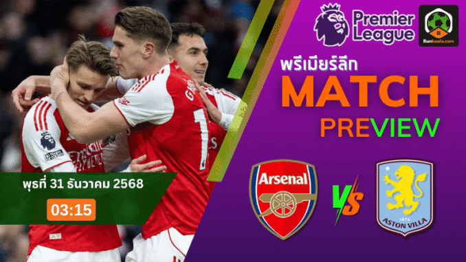 พรีเมียร์ลีก คืนวันพุธที่ 31 ธันวาคม 2568 เวลา 03.15 น. แฟนบอลอังกฤษมีนัดเปิดศักราชความมันอีกครั้ง เมื่อจ่าฝูง อาร์เซนอล เปิดรังเอมิเรตส์ สเตเดี้ยม รับการมาเยือนของ แอสตัน วิลล่า ทีมฟอร์มแรงอันดับ 3 ของตาราง เกมนี้ไม่ใช่แค่ดวลกันธรรมดา แต่คือแมตช์ชี้ทางลุ้นแชมป์ระยะยาวของทั้งสองสโมสรบนหน้า ตารางบอลวันนี้ ที่ถูกวงสีแดงเอาไว้ตั้งแต่โปรแกรมออกมาแล้ว