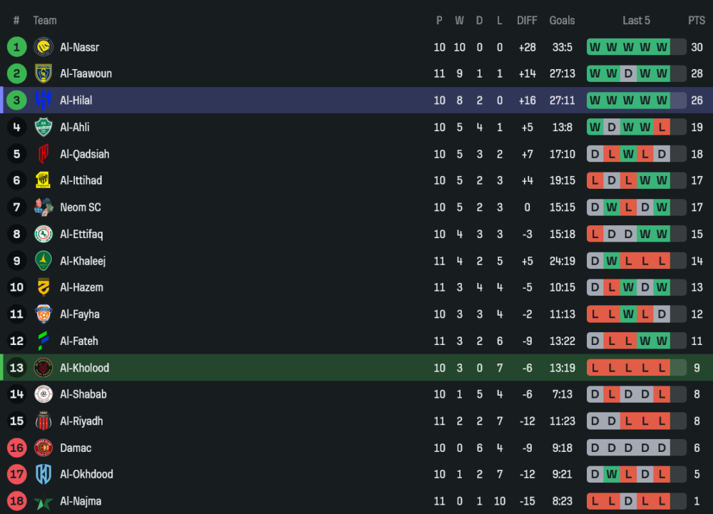 สถานการณ์ในลีกตอนนี้ อัล คูลูด ลงเตะไปแล้ว 10 นัด เก็บได้ 9 คะแนน จากผลงานชนะเพียง 3 นัด และแพ้ถึง 7 นัด ร่วงมาอยู่โซนล่างของตารางแบบน่าเป็นห่วง ขณะที่ อัล ฮิลาล เดินหน้าโกยชัยไม่หยุด ชนะ 15 นัดรวดทุกรายการ ฟอร์มร้อนแรงจนกลายเป็นทีมที่ไม่มีใครอยากเจอในชั่วโมงนี้ เก็บไปแล้ว 26 แต้ม จาก 8 ชนะ 2 เสมอ ตามหลังจ่าฝูง อัล นาสร์ แค่สี่คะแนนเท่านั้น