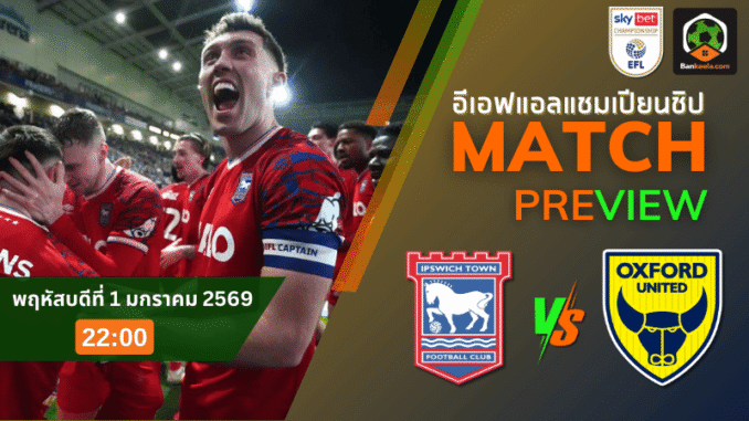 ค่ำคืนวันพฤหัสบดีที่ 1 มกราคม 2569 แฟนบอลอังกฤษมีนัดใหญ่ที่พอร์ทแมน โร้ด เมื่อ อิปสวิช ทาวน์ ทีมอันดับ 3 ของตารางเปิดบ้านรับมือ อ็อกซ์ฟอร์ด ยูไนเต็ด ที่กำลังหนีตายจากโซนท้ายตาราง เตะเวลา 22.00 น. ตามเวลาประเทศไทย เกมนี้ถือเป็นหนึ่งในคู่ที่ถูกจับตามองในกลุ่มโปรแกรมลีกรอง เพราะมีผลโดยตรงต่อเส้นทางลุ้นเลื่อนชั้นของเจ้าถิ่น และภารกิจเอาตัวรอดของทีมเยือนใน แชมเปียนชิพ อังกฤษ