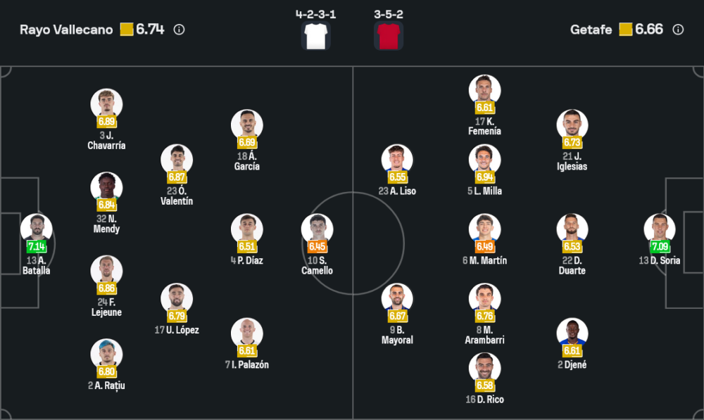 อย่างไรก็ดี 11 ตัวจริงจากภาพไลน์อัปล่าสุดยังดูแน่นอนในระบบ 4-2-3-1 นายด่านใช้ ออกุสโต้ บาตาย่า ยืนเฝ้าเสา แผงหลังสี่คนมี อันโตนิโอ ราติอู ประจำการทางขวา ฟลอริย็อง เลอฌูน ยืนเซ็นเตอร์คู่กับ โนเบล ม็องดี้ และฝั่งซ้ายเป็นแบ็กจอมเติมอย่าง โฆเซ่ ชาวาร์เรีย กลางรับสองตัวใช้ ออสการ์ วาเลนติน ประสานงาน อูไน โลเปซ คอยตัดเกมและเชื่อมบอลไปสู่สามตัวรุกอย่าง อัลบาโร่ การ์เซีย ทางซ้าย ปาโซ่ ดิอาซ ยืนกลางรุก และ ไอซี่ ปาลาซอน ทางขวา ปิดท้ายด้วยหน้าเป้าสายขยัน เซร์กิโอ กาเมโญ่ ที่พร้อมวิ่งกดดันแนวรับคู่แข่งตลอด 90 นาที