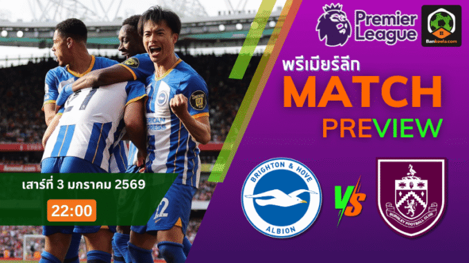 ศึกพรีเมียร์ลีกคืนวันเสาร์ที่ 3 มกราคม 2569 เวลา 22.00 น. ตามเวลาไทย แฟนบอลต้องไม่พลาดคู่มันส์ที่สนามเอเม็กซ์ สเตเดี้ยม เมื่อไบรท์ตัน โฮฟ อัลเบี้ยน ทีมอันดับ 14 เปิดบ้านรับการมาเยือนของเบิร์นลี่ย์ ทีมอันดับ 19 เกมนี้ไม่ใช่แค่สามแต้มธรรมดา แต่คือการวัดใจระหว่างทีมที่กำลังเสียศูนย์กับทีมที่กำลังหนีตายจากโซนตกชั้น ใครพลาดมีโอกาสถูกกลืนหายไปในแรงกดดันของตารางคะแนนทันที ราคาหน้าเสื่อจากบ่อนเมืองผู้ดีเปิดมาให้เจ้าถิ่นต่อหนึ่งลูกเต็ม สะท้อนชัดว่าเกรดบอลและศักยภาพโดยรวมของไบรท์ตันยังดูเหนือกว่า แต่ฟอร์มช่วงหลังที่สะดุดบ่อย ทำให้เหล่าเซียนที่กำลังไล่เช็ก ตารางบอลวันนี้ ต้องคิดหนักเหมือนกันว่าจะตามต่อหรือสวนรอง เกมนี้ยิ่งได้เตะภายใต้แสงไฟและเสียงเชียร์ในบ้าน ยิ่งเพิ่มดีกรีความเข้มข้นให้การลุ้นผ่านจอแบบ ดูบอลออนไลน์ หรือซัดเต็มจอแบบ ดูบอลสด กันแบบช็อตต่อช็อต