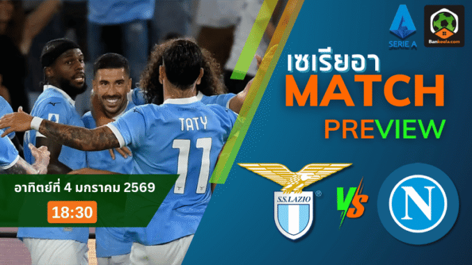 ศึกกัลโช่ เซเรียอา คืนวันอาทิตย์ที่ 4 มกราคม 2569 เวลา 18.30 น. ตามเวลาเมืองไทย สนามสตาดิโอ โอลิมปิโก้ ในกรุงโรมจะเดือดเป็นพิเศษ เมื่อ ลาซิโอ เปิดบ้านรับการมาเยือนของ นาโปลี สองทีมใหญ่ที่กำลังเบียดแย่งพื้นที่หัวตารางกันแบบหายใจรดต้นคอ บ้านกีฬา มองว่านี่คือเกมที่ทั้งเรื่องชื่อชั้น ขุมกำลัง และแท็กติกต่างก็สูสี จนแฟนบอลต้องเตรียมขนม เครื่องดื่ม แล้วนั่งหน้าจอรอเชียร์กันยาวๆ