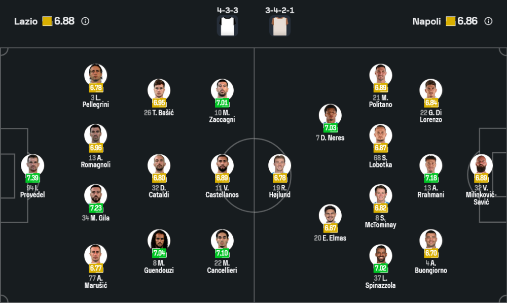 ในมุมมองการ วิเคราะห์บอล ของบ้านกีฬา เกมนี้คือการดวลกันระหว่างสไตล์ครองบอลบุกเป็นชุดของซาร์รี่ กับแท็กติกเกมรับสามเซ็นเตอร์บวกสวนกลับเร็วจัดของคอนเต้ ฝั่งลาซิโอจะพยายามคอนโทรลจังหวะตั้งแต่แดนหลังขึ้นมาด้วยการต่อบอลสั้นจากคาตัลดี้และเกนดูซี่ แล้วค่อยๆ เคลื่อนบอลออกไปที่ริมเส้นให้ซัคคานญี่และคันเชลลิเอรี่ดวลตัวต่อตัวกับวิงแบ็กของนาโปลี