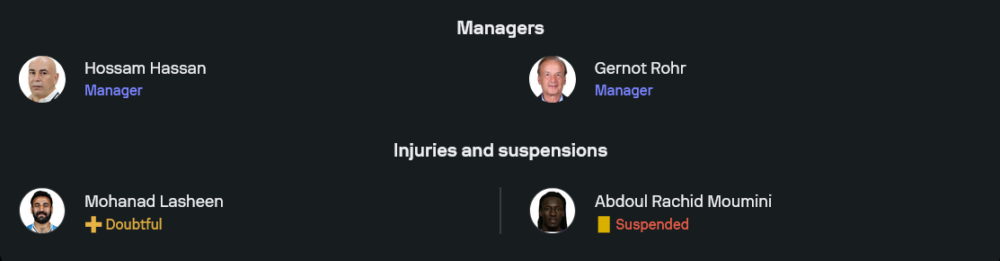 จากภาพแผนของ Sofascore เกมนี้อียิปต์เน้นความรัดกุมด้วยระบบ 5-3-2 ให้ ซาล่าห์ จับคู่ล่าสกอร์กับ โอมาร์ มาร์มูช ด้านเบนินของ เกอร์โนต์ รอห์ร วางหมาก 4-2-3-1 ใช้ สตีฟ มูนี่ ยืนหอกเดี่ยว มีสามตัวรุกอย่าง อเดโตลา ทอซิน, โดโด้ โดกู และ จู๊ด โอไลตาน คอยหนุนด้านหลัง ดูทรงแล้วงานนี้แนวรับของทั้งสองทีมต้องเจองานหินตลอด 90 นาทีแน่นอน