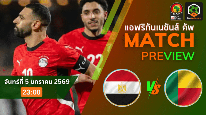 ศึกใหญ่ของทวีปแอฟริกาค่ำคืนนี้ เป็นการดวลเดือดระหว่าง “ขุนพลมัมมี่” อียิปต์ กับ เบนิน ในรอบสำคัญของศึก แอฟริกา คัพ ออฟ เนชั่นส์ 2025 แข่งกันคืนวันจันทร์ที่ 5 มกราคม 2569 เวลา 23.00 น. ตามเวลาไทย ที่สนามสต๊าด อั๊ดราร์ ดินแดนที่บรรยากาศร้อนระอุไม่แพ้แรงเชียร์ในสนาม