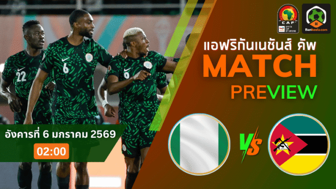 ค่ำคืนฟุตบอลทวีปแอฟริกาวันอังคารที่ 6 มกราคม 2569 แฟนบอลต้องไม่หลับไม่นอน เมื่อไนจีเรียทีมใหญ่ของทวีปพร้อมลงสนามดวลเดือดกับโมซัมบิก ในศึกแอฟริกา คัพ ออฟ เนชั่นส์ รอบ 16 ทีมสุดท้าย ที่สนามคอมเพล็กซ์ สปอร์ทิฟ เด เฟส ประเทศโมร็อกโก เตะเวลา 02.00 น. ตามเวลาไทย เกมนี้ถูกจับตามองทั้งในแง่ชื่อชั้นและสไตล์การเล่นที่ดุดันของสองชาติ ทำให้กลายเป็นหนึ่งในคู่ไฮไลต์บนหน้า ตารางบอลวันนี้ แบบไม่ต้องสงสัย